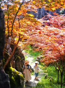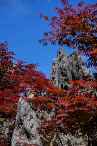 特色看点:石林曲径通幽,火红的彩叶映照其中,形成鲜明色彩对比,清新别致、浪漫多姿,适合浪漫漫步、摄影。