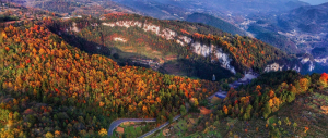 特色看点:罕见的天坑地貌,天坑口部犹如一个巨大的心形,这里保留着最原始的自然风光,仿佛是一个与世隔绝的世外桃源。秋冬时节,心形天坑的口部染上了一层浪漫的红色彩叶,是情侣打卡的好去处。