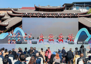展演现场气氛热烈,座无虚席。掌声、喝彩声与富有民族特色的旋律交织回荡在山水之间。开场舞蹈《酉阳欢迎您》以灵动柔美的舞姿,瞬间点燃全场气氛。节目巧妙融入国家级非遗苗绣和西兰卡普,搭配原汁原味的土家摆手舞,生动传递出酉阳人民的真挚热情。据《酉阳欢迎您》演员尚菲介绍,团队为此次演出精心排练月余,期望向四方宾朋展现“酉阳既有桃花源的诗意悠远,更有土家人的热忱如火”。