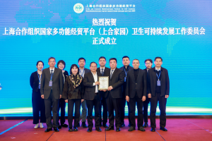 胡开强总干事为上海合作组织国家多功能经贸平台(上合家园)卫生可持续发展工作委员会授牌。