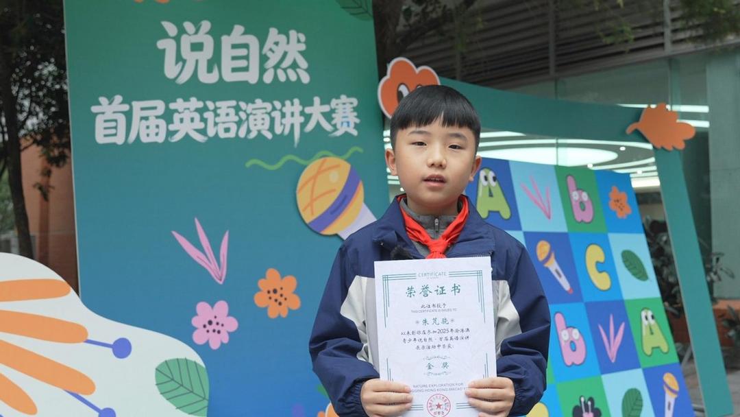获奖学子也分享了参与感悟。星光学校金奖获得者朱芃骁表示,此次演讲围绕救助受伤小鸟的经历展开,活动中不仅积累了自然相关英语知识与词汇,更丰富了自身自然认知。