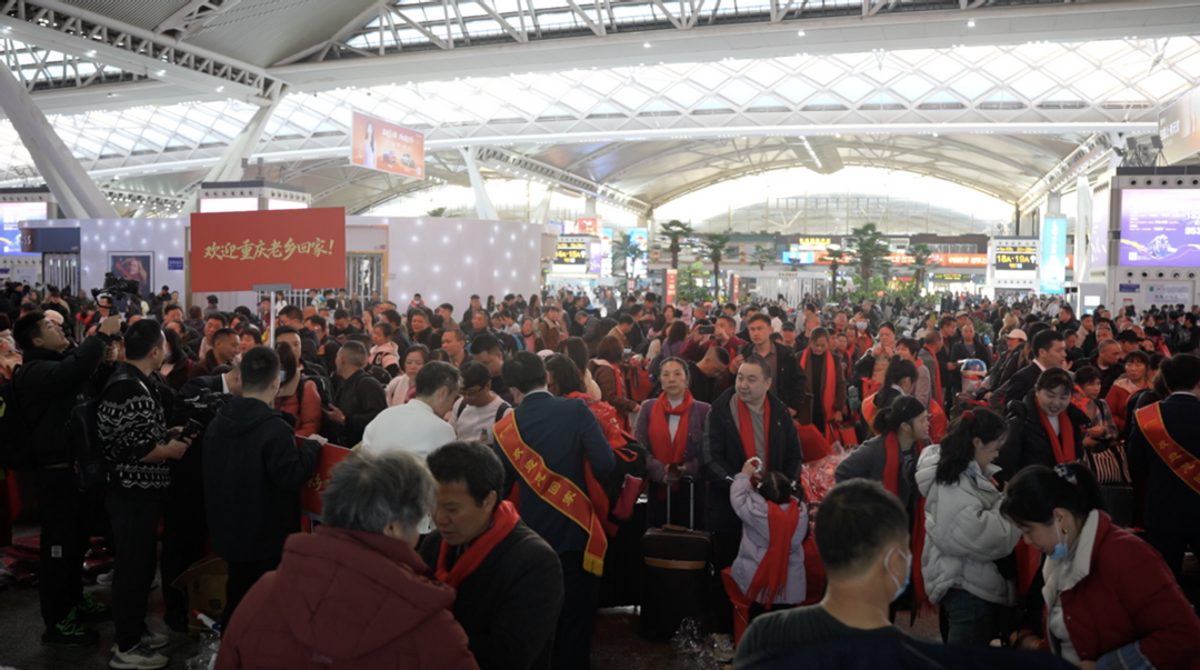 2月3日清晨 8 点,广州南站候车大厅内暖意融融。一群戴着红围巾的重庆籍农民工,在工作人员的引导下有序列队,肩上的行囊沉甸甸,脸上满是对团圆的期盼。他们即将乘坐由重庆市人力社保局、中国邮政重庆市分公司组织的农民工返乡专列,奔赴家乡。