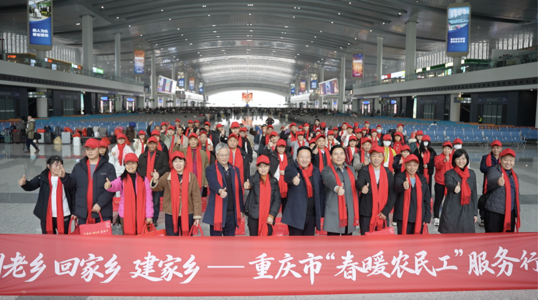 “今年春节,市外预计有200万重庆籍农民工返乡回家过年。我们将协同相关部门为农民工集中购票乘车提供便利,并根据需要组织开展‘点对点’包专车、包专列。同时,我们还在高铁站、汽车站等交通枢纽和人员聚集区,设置1000个服务点,全力做好服务保障工作,护航农民工节前平安返乡、节后顺利返岗。”重庆市人力社保局相关负责人表示。
