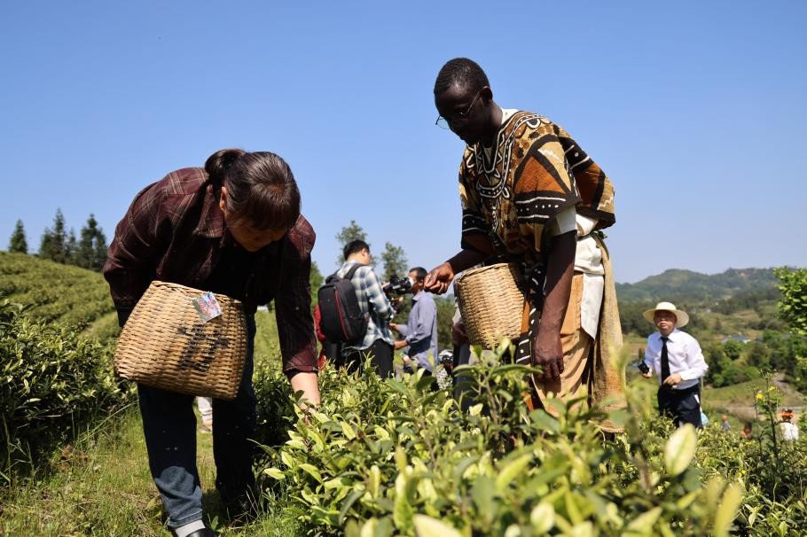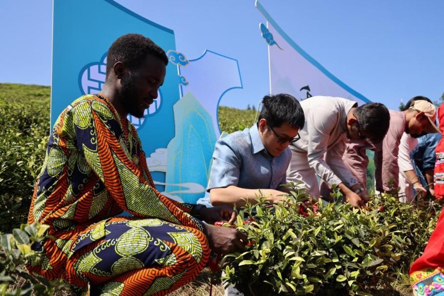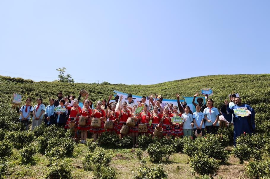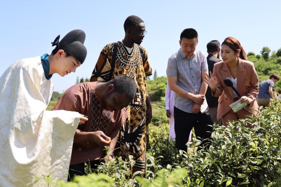活动尾声,中外青少年在采茶师傅的悉心指导下,结伴采摘春茶,在亲身实践中感受中华茶文化的独特魅力。