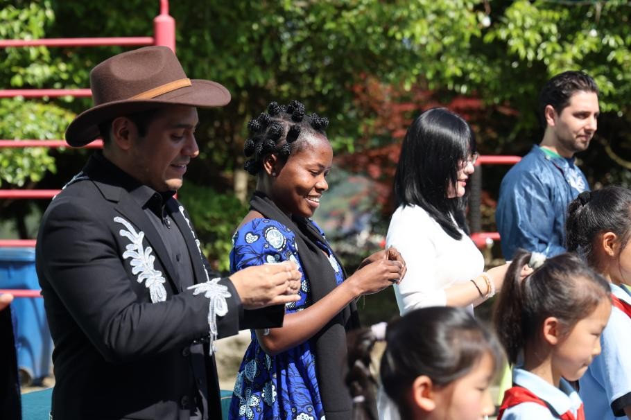 重庆市南川区南平小学校校长李侃告诉记者:“活动中,孩子们与来自世界各国留学生共植友谊茶树,挥锹培土间,友谊的种子悄然生根;携手采茶时,指尖轻捻嫩芽,感受着金佛山千年茶脉的温润。留学生们对茶文化的浓厚兴趣与细致学习,让我看到文化交融的魅力。孩子们不仅在茶香中培养了热爱大自然的情怀,更在与国际友人的互动中开阔了视野,学会了尊重与包容。通过共采谷雨茶、共植友谊树,我们不仅传播了金佛山茶文化的精髓,更搭建起一座跨越国界的友谊之桥。这样的活动,让孩子们在体验中成长,在交流中收获,是教育最生动的实践。”