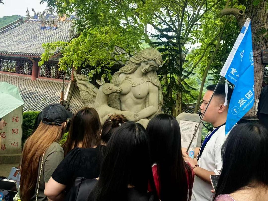 随后,一行人前往名山景区,在导游的讲解中,近距离感受自唐代以来汇聚的建筑、雕塑与绘画瑰宝。景区将东方鬼神文化中的“阴曹地府”“十八层地狱”以民族建筑形式生动呈现,融儒、释、道三教文化于一体,传递“惩恶扬善、唯善呈和”的精神内核,令同学们深感新鲜与震撼。