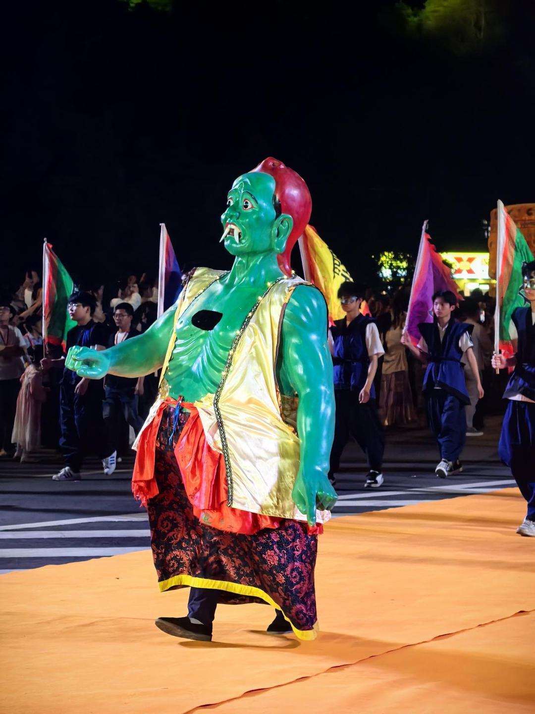 4月18日晚,2026年丰都庙会街头巡游活动进入第二天。千余名演员组成的巡游队伍中,包括不少本地群众。