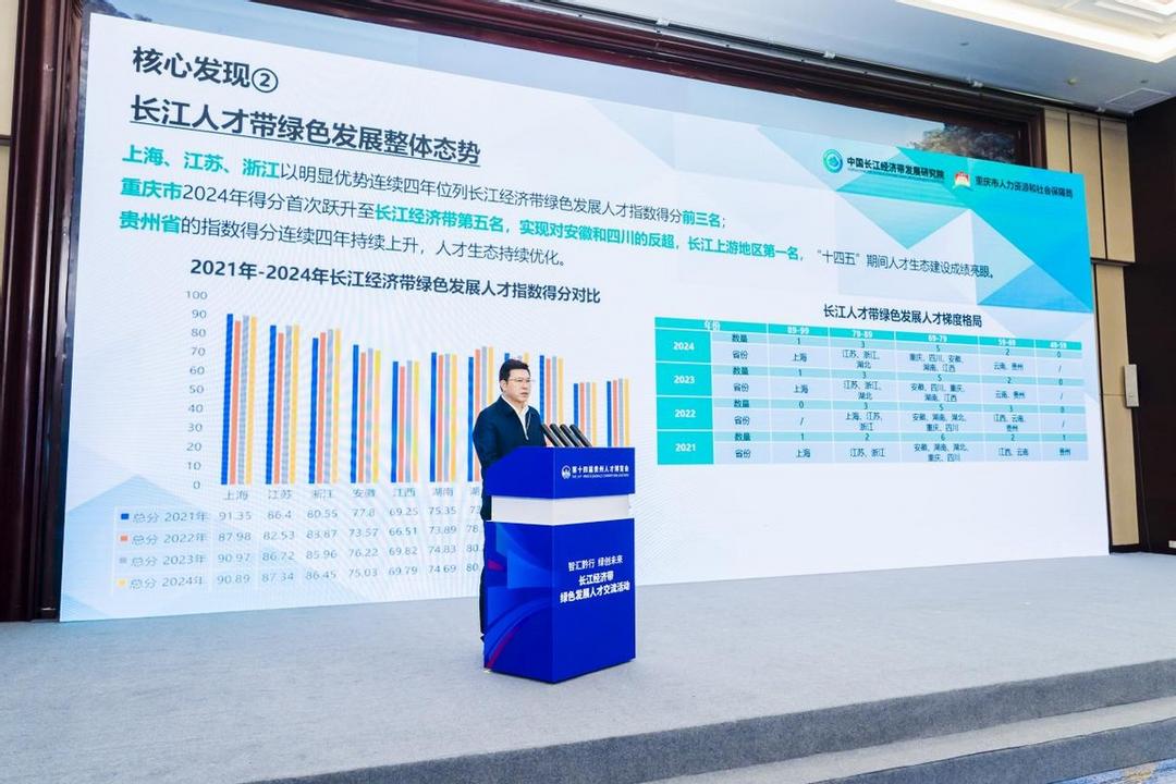 活动开幕式上,中国长江经济带发展研究院院长袁羽钧发布《中国长江经济带绿色发展人才报告(2025)》。报告全面总结了长江经济带“十四五”期间绿色人才发展工作,并增加了成渝地区双城经济圈绿色发展人才评价的特别篇章。通过整体呈现、具象分析、案例展示、政策建议等多维度报告,既为沿江省市人才工作精准画像,也为下一步务实合作与政策优化提供了科学导航。