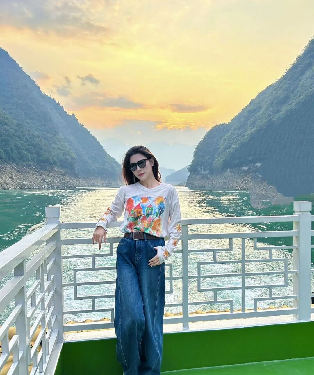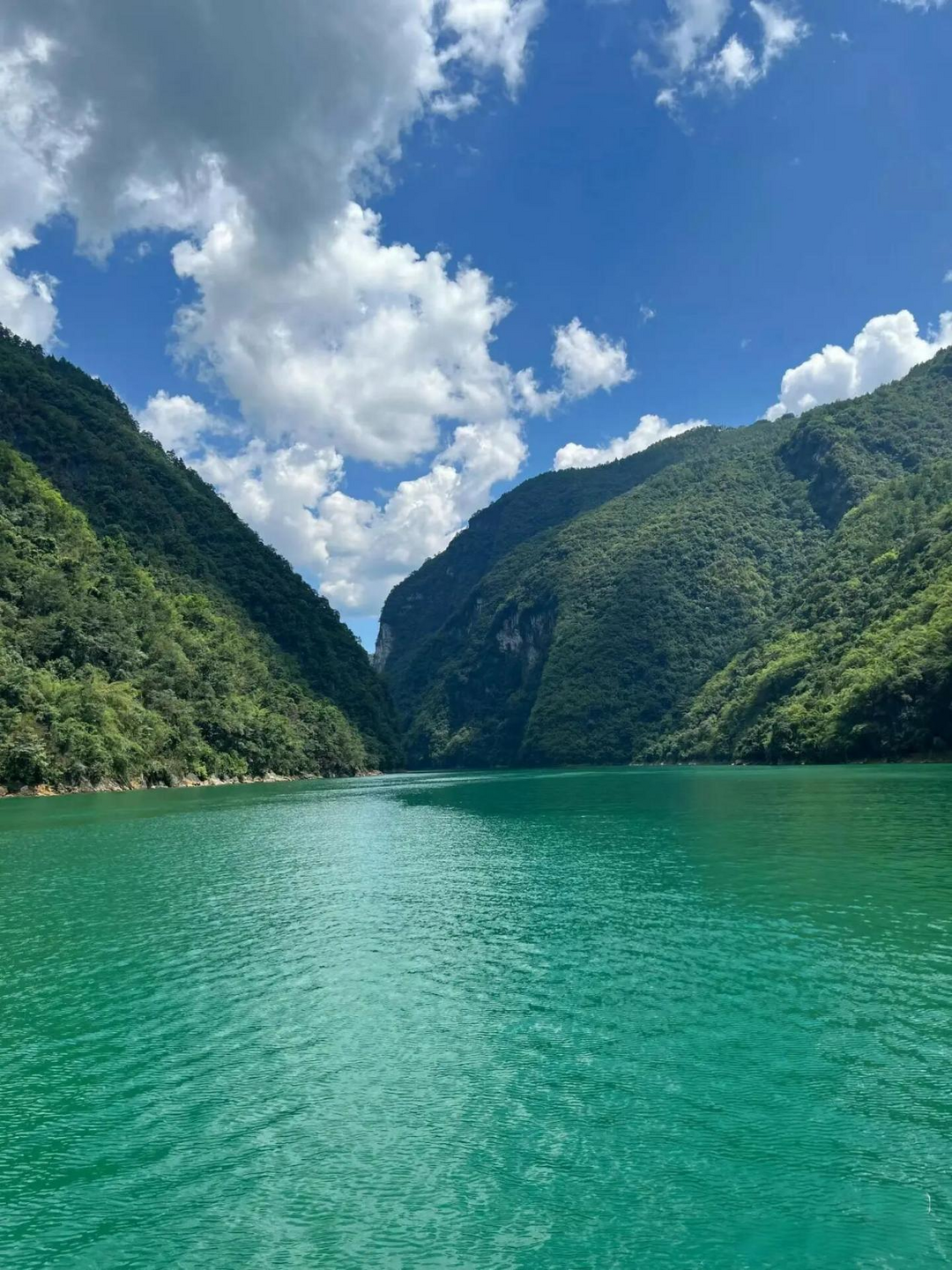 游览芙蓉江。看完溶洞,再乘船游江,江水碧绿如翡翠,两岸是原始的喀斯特峰林,如画卷般徐徐展开,正好洗洗眼睛。泛舟江上,微风拂面,为三天的山海之旅画上一个温柔的句号。