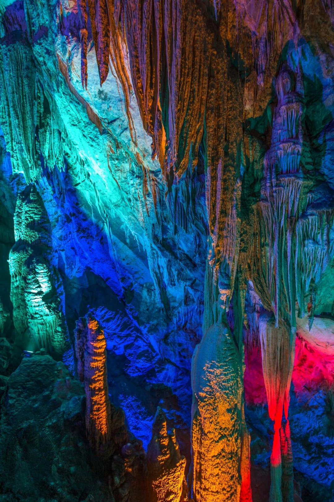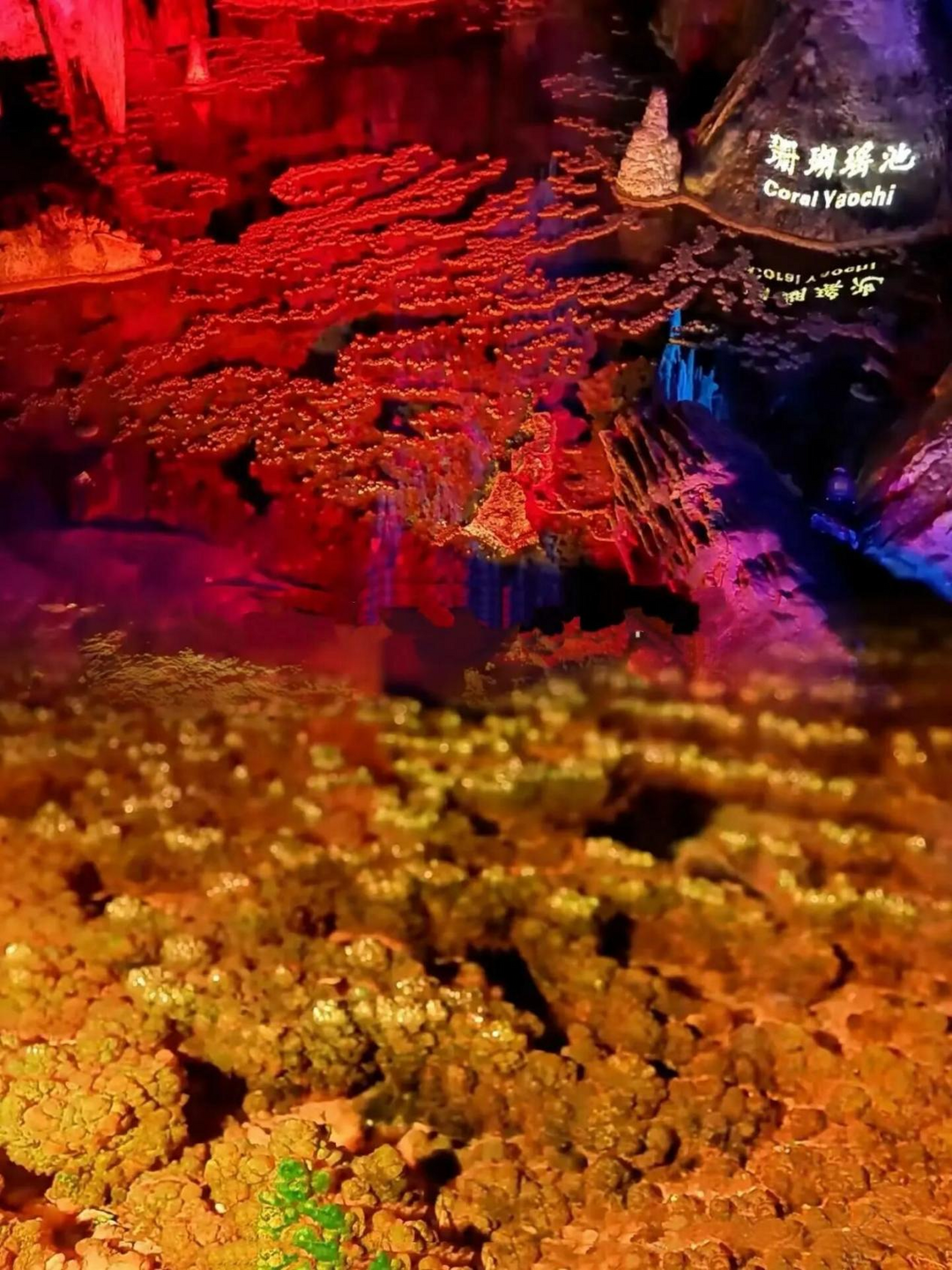 下山前往江口镇,探秘芙蓉洞——一座斑斓辉煌的地下艺术宫殿。在昏暗的灯光下,看着几十万年才形成的钟乳石,石笋、石幔、石花层层叠叠,那种时间凝固的感觉很奇特。