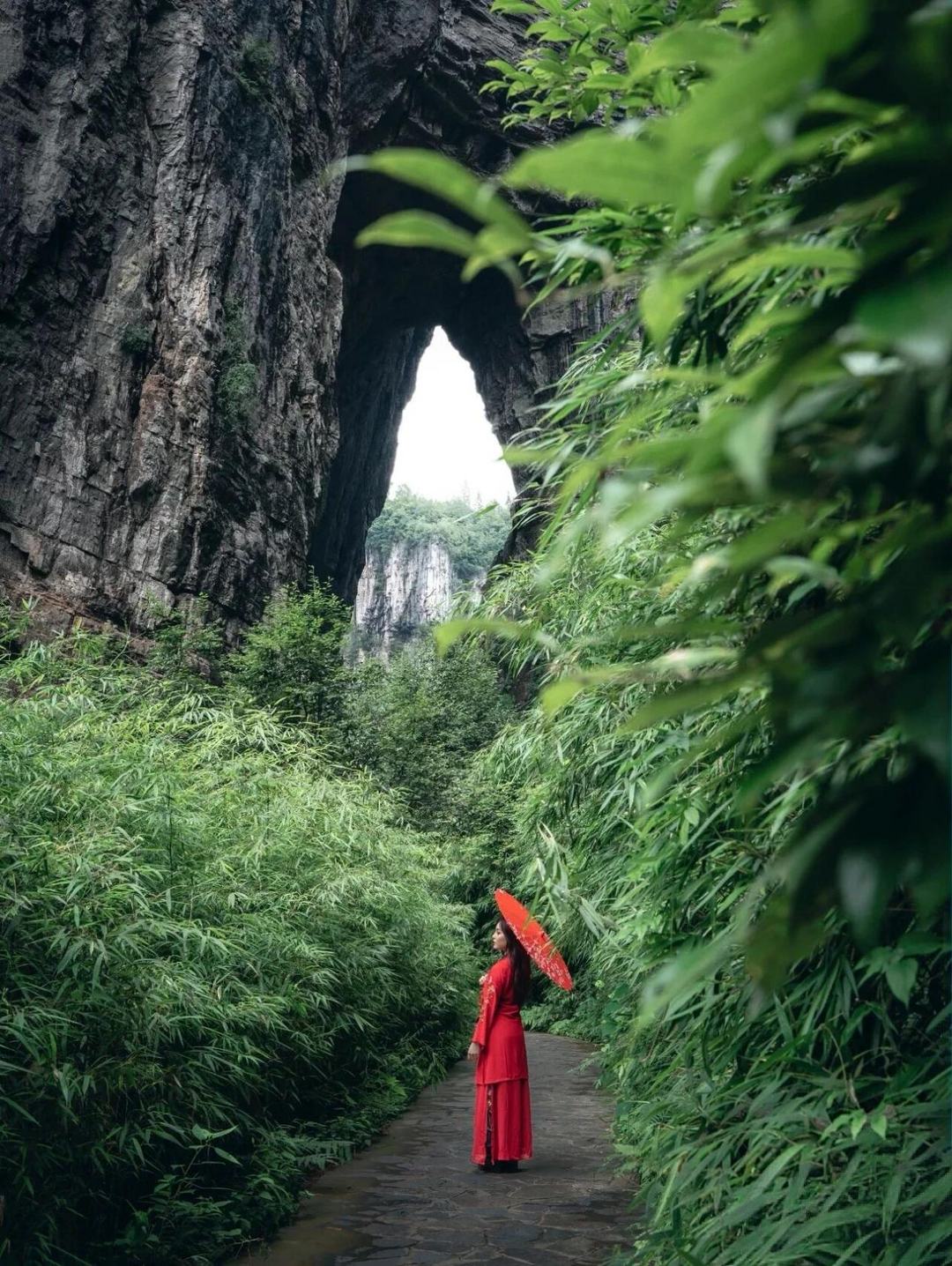 上午:直杀世界自然遗产的核心——天生三桥,这里是《变形金刚4》和《满城尽带黄金甲》的取景地。坐观光电梯下到谷底,仰望天龙桥、青龙桥、黑龙桥三座天生石桥,那种压迫感和对自然的敬畏无法用言语形容。千万别错过《逐玉》的同款取景地。